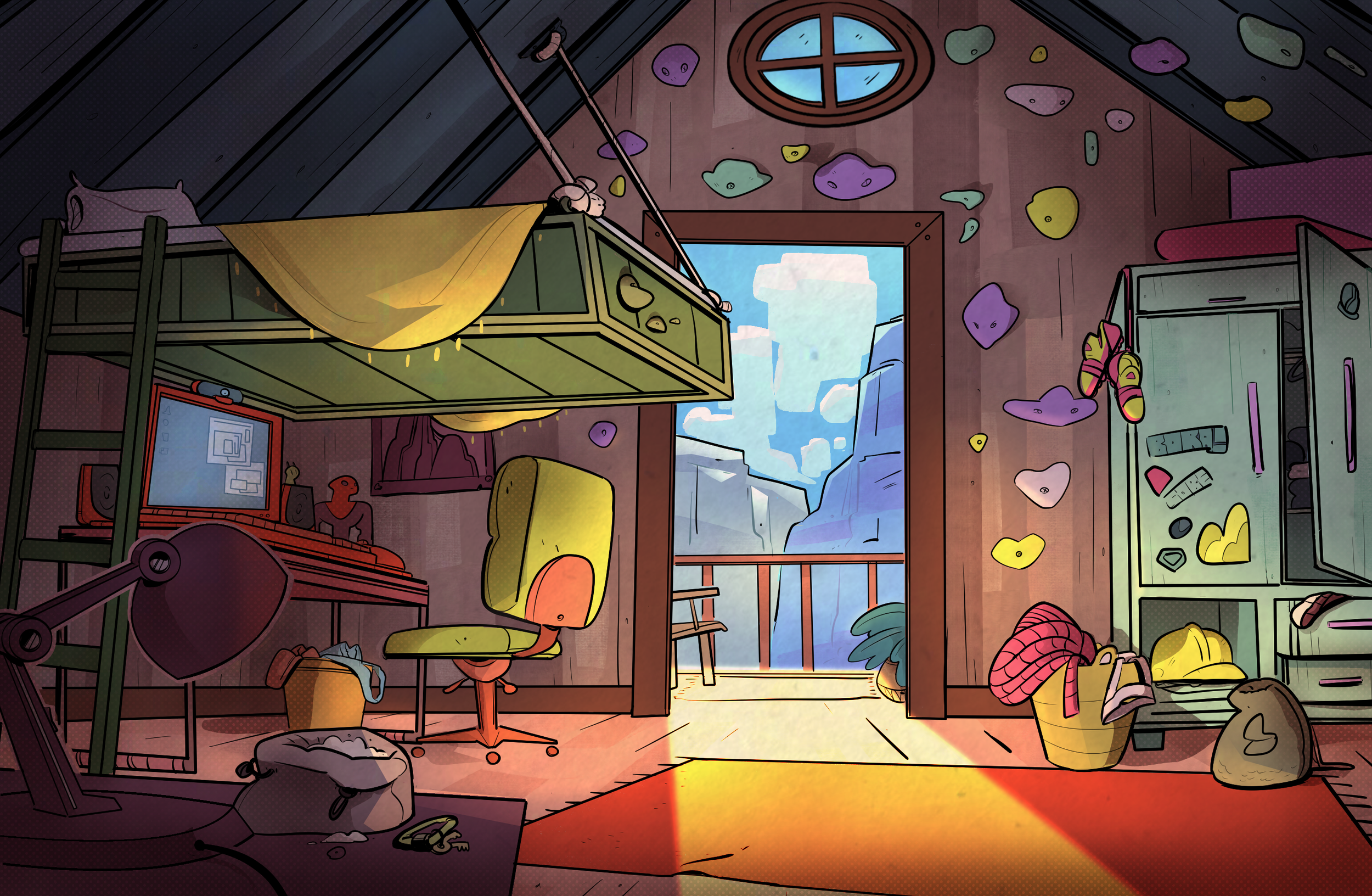 A year after my ghost-themed bedroom project, I returned to designing a child's room with a different approach and a new art style. This time, I created a room with an indoor climbing theme.